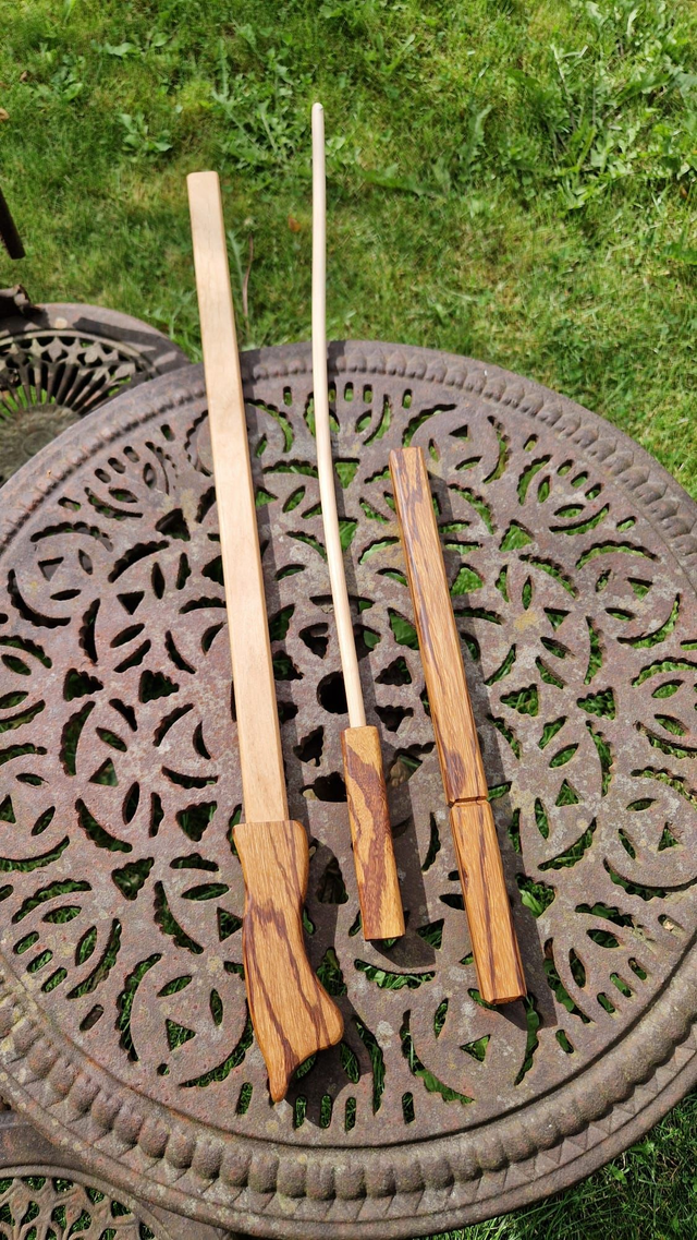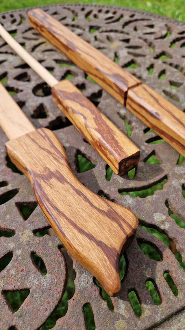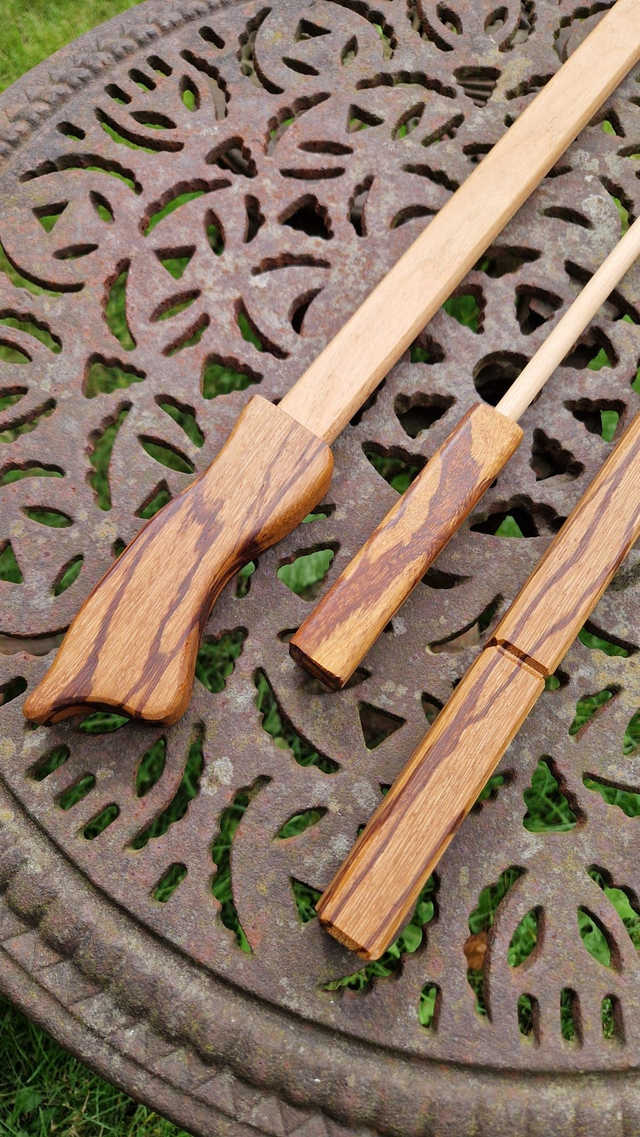 Prachtige set van bostamarinde hout. Een headmasters cane van bostamarinde met rode els, een ronde cane van pitriet met luxe handvat en een jummieknuppel.